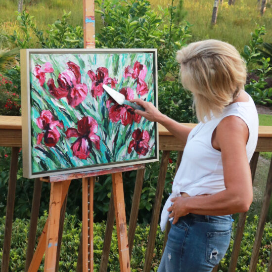 Meet artist Kathy Schumacher at watch her paint live at the Arty Kick Off Party al